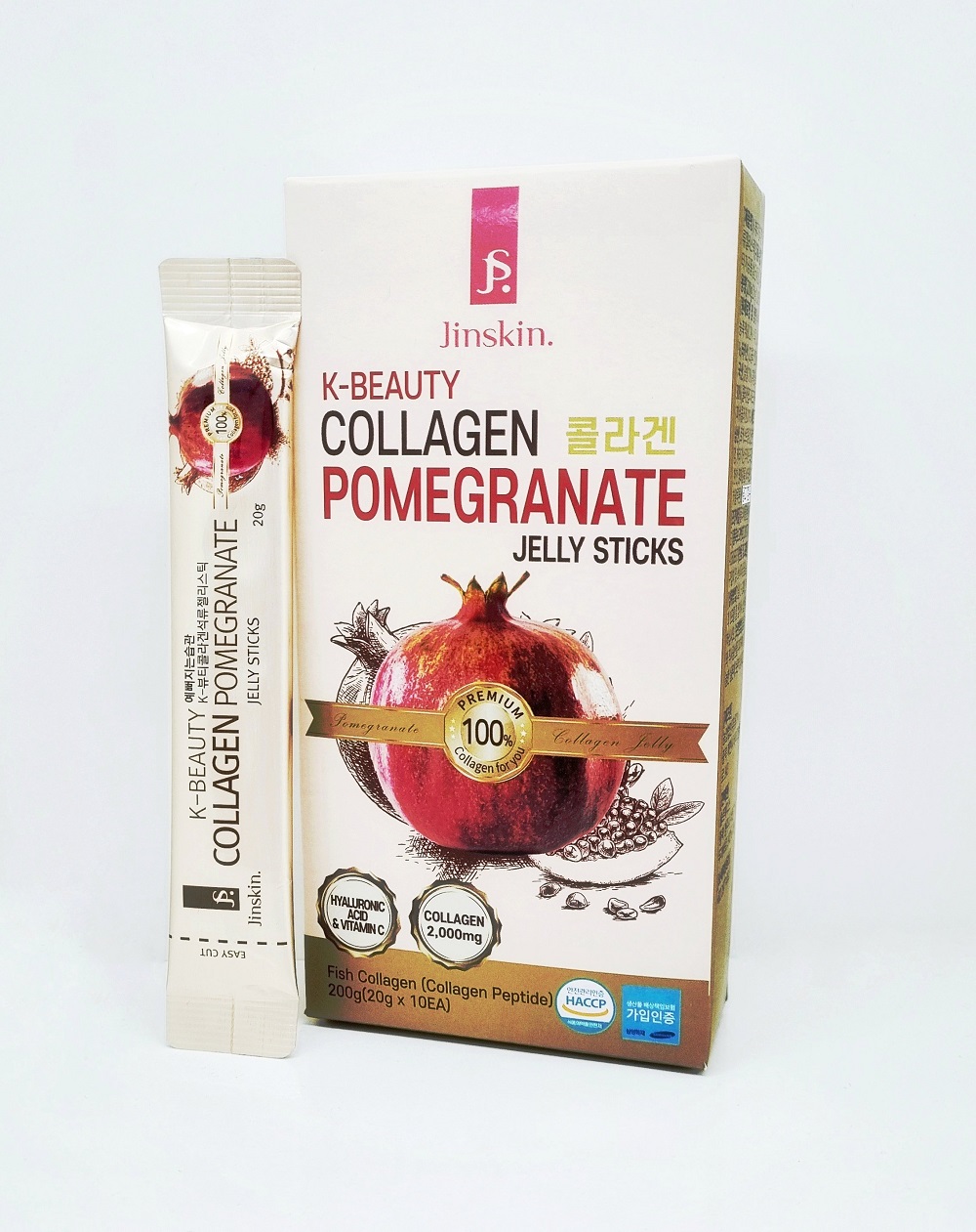 Желе JINSKIN содержит низкомолекулярный коллаген, который по своей структуре максимально приближен к коллагеновым волокнам кожи, поэтому легко усваивается организмом и способствует интенсивному восстановлению клеток. Помимо этого, в составе коллагенового желе присутствует витамин С, гиалуроновая кислота и гранат, богатый витаминами и микроэлементами. При длительном употреблении в пищу коллагенового желе наблюдается накопительный эффект.