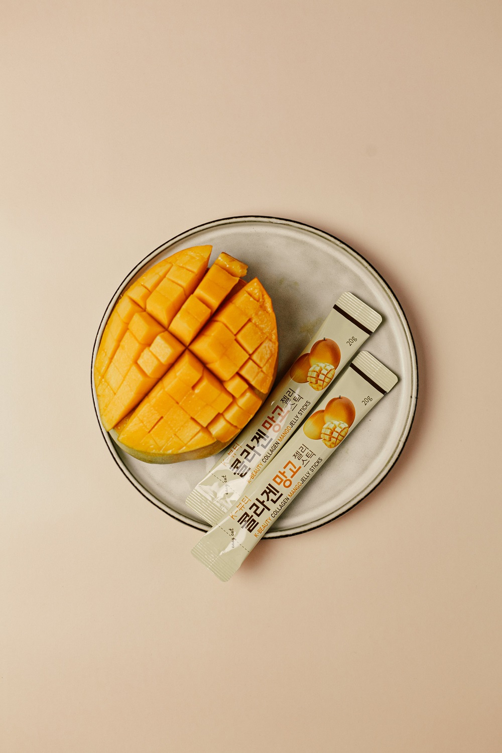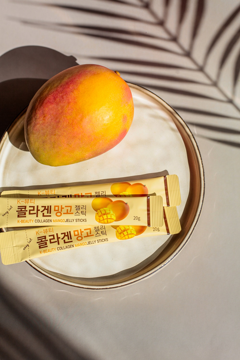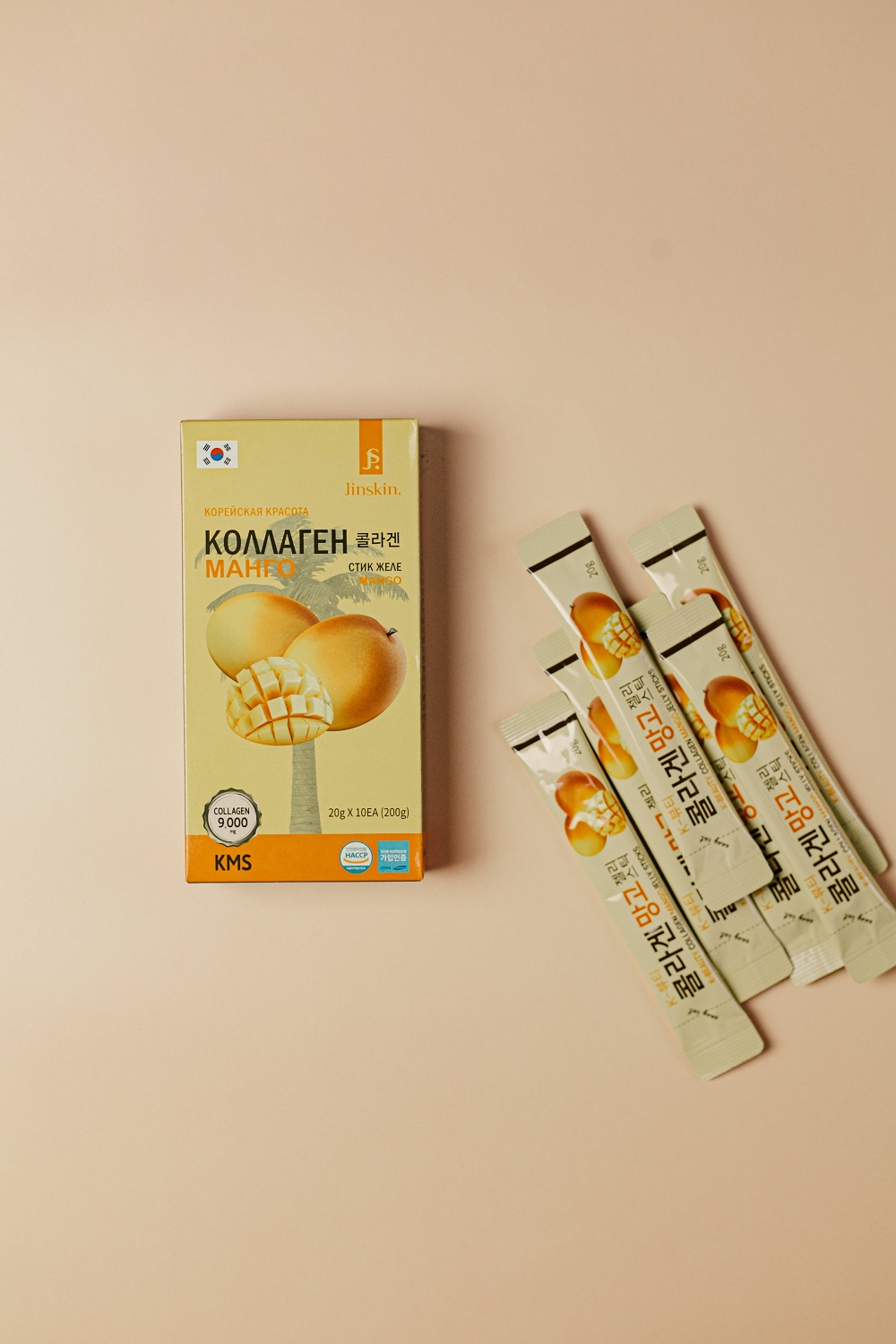Концентрат манго 83,5% (манго 100%), фруктоолигосахариды, рыбный коллаген 4,5%, камедь рожкового дерева (загуститель), ксантановая камедь (загуститель), каррагинан (загуститель), агар-агар (загуститель), лимонная кислота, витамин С (L-аскорбиновая кислота), хлорид калия (агент желирующий), порошок манго..
