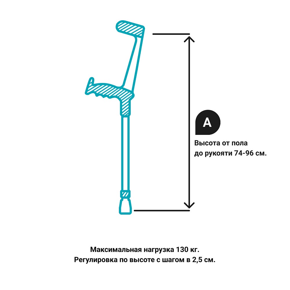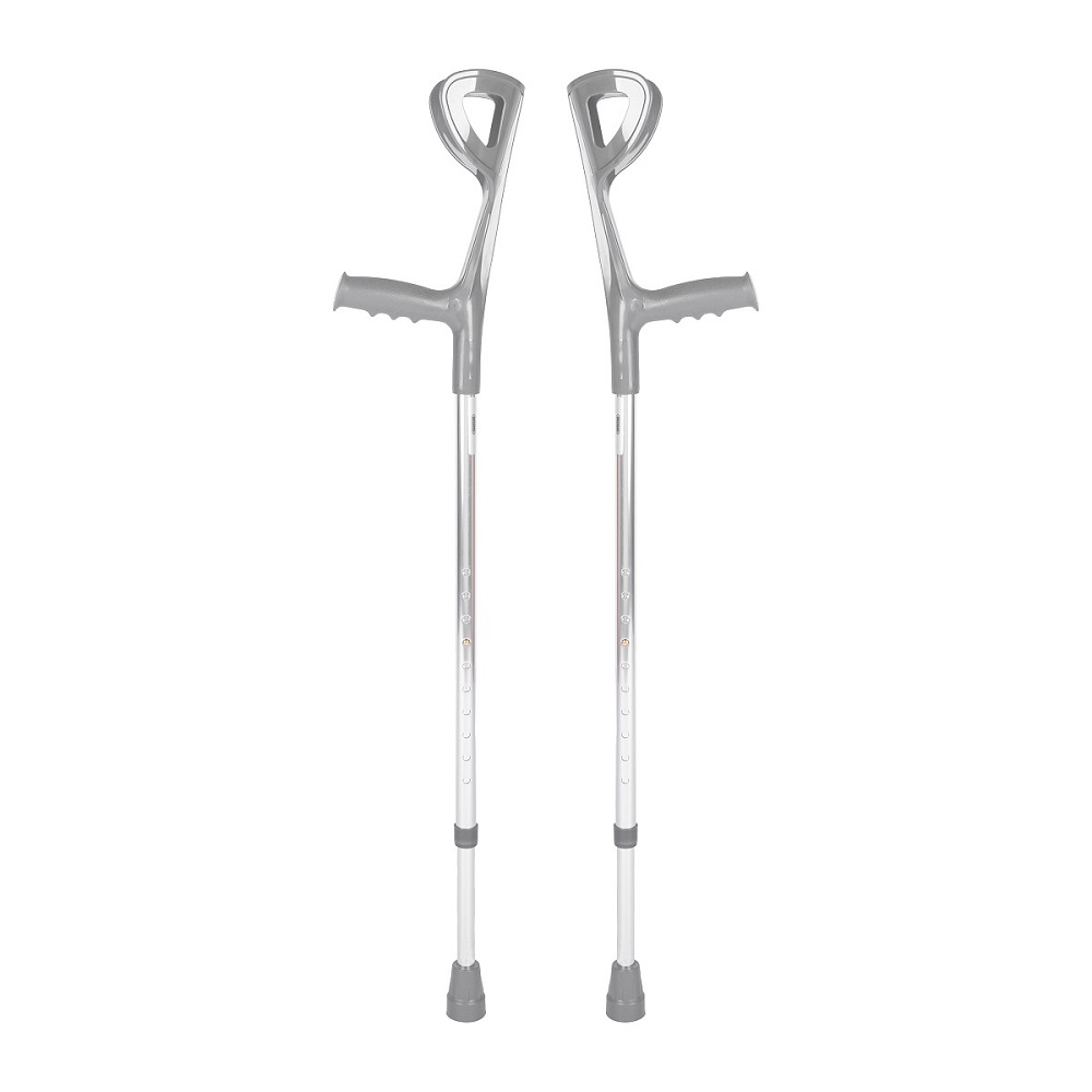 Открытые пластиковые опоры под локоть, обхватывая предплечье, создают комфорт при использовании костылей.