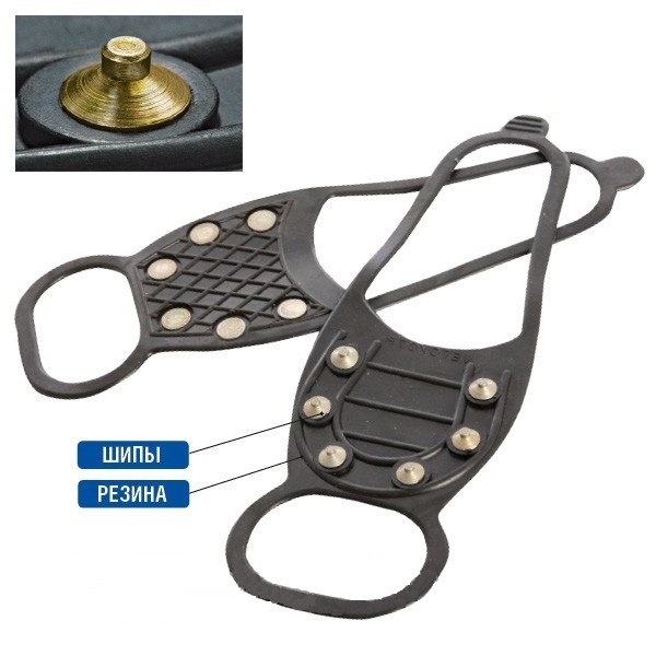Но 6 круглых шипов достаточно эффективно врезаются в гололед. Размер: Универсальный 35-50Состав: ТЭП - 50 %Резина - 50 %Шипы - сталь