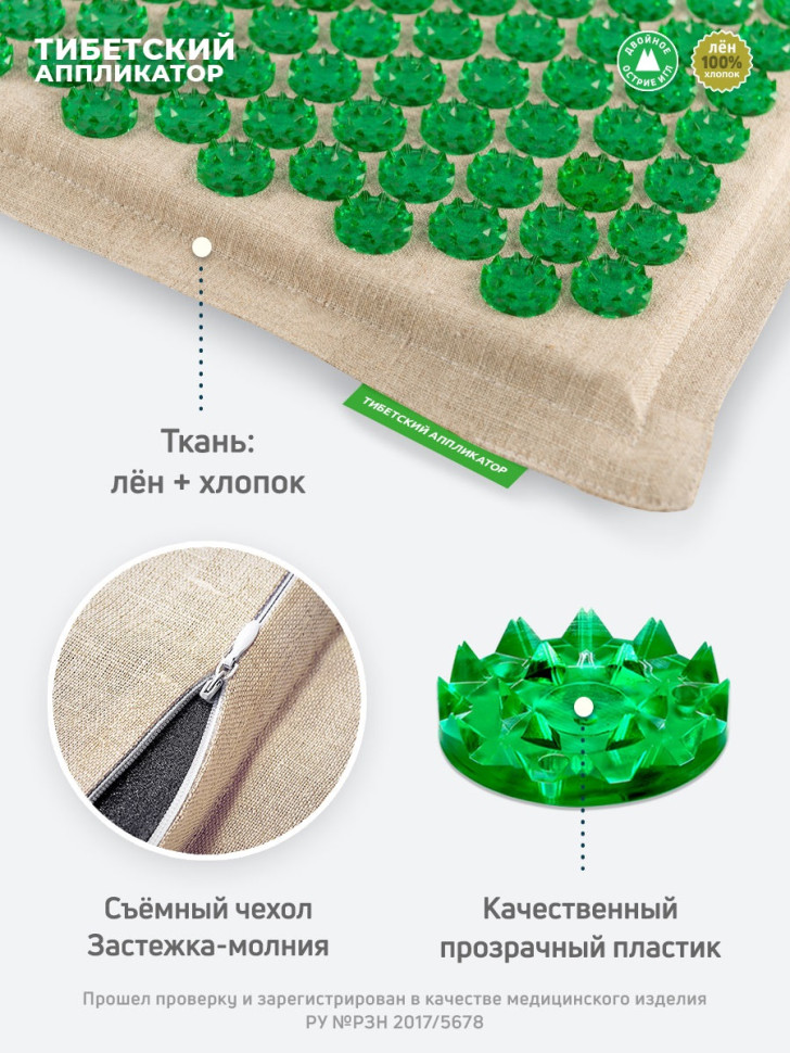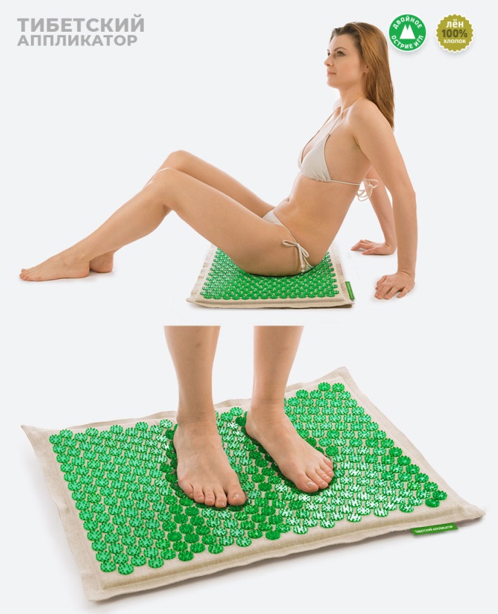 Тибетский аппликатор на мягкой подложке 41х60см кладут на горизонтальную поверхность (например, на кровать или на пол), затем на него ложатся (садятся, встают ногами), обеспечивая колющее воздействие с помощью веса тела. Сила вдавливания должна обеспечивать колющее воздействие в пределах болевой переносимости, которое обычно сопровождается ощущением тепла. Ощущение тепла свидетельствует о высокой эффективности воздействия.