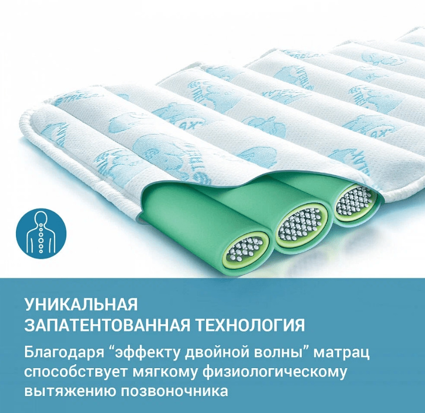 волнообразная поверхность матраса и подобранные материалы обеспечивают необходимый воздухообмен, предотвращая потницу;
