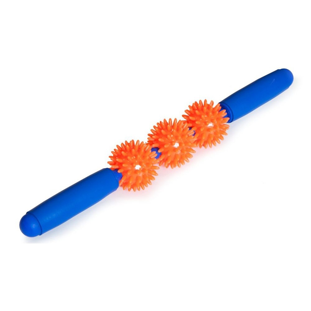удобная для применения конструкция с ручками и тремя малыми массажными игольчатыми мячами наиболее эффективна для крупных мышечных групп.